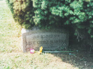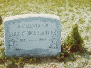 I met Eric in early April, 1969 when he came home to visit his parents in Connecticut before heading to Vietnam. We met at the Fore N' Aft in Brewster, New York, where I went on weekends to dance. He asked me to dance, and we danced together the rest of the evening and talked. Being he was such a good-looking guy, I asked him if he had a girlfriend. He said, "Well, they think they're my girlfriend, but I know they aren't." He then asked me if I had a boyfriend, and I said the same was true for me, too. With that question out of the way, we both relaxed in each other's company and continued dancing and talking. At the end of the evening, we definitely wanted to see each other again, so we sat in his little green MBG-GT and made plans for him to come over to my parents' house in N.Y. the following day. He showed up that afternoon, and after playing some pool in my parents' basement, we went out that evening to a drive-in movie in Tarrytown and saw "The Russians are Coming." We talked on the telephone and spent as much time together as we could, going to movies, eating out, and talking and kidding with each other. We were content just being together. He laughed a lot, and when I asked him why he was always laughing, he said he was happy. When it really hit me just how little time we had left to spend together, I offered to play hooky from work one day, and he invited me over to his parents' house in Newtown to spend the day with him. We talked and laid on the couch watching cartoons, and sometime during the day he gave me his 1st Infantry Division patch. He had totaled his MBG-GT in an accident during the time he was home and had some stitches on the side of his forehead. So, that afternoon he drove my little Chevy Nova, and we went to Danbury Hospital so he could get the stitches out. Later in the day I met his folks and his sisters, Diane and Merry, and I stayed for dinner. Eric and I connected on a very deep, caring, and loving level during our time together. The last night Eric and I were together was the Saturday night before he left for Vietnam. We had gone to a movie in Mt. Kisco and out to eat. It was difficult to know how to say goodbye when he took me home. There was still so much to say and do together, but he had to leave the next morning. He finally said, "I know we're not engaged, but I'd like to see you when I get out." I said I would be waiting for him, and I was. I was totally committed to him; heart and soul. It was a month before I got my first of seven letters from Eric. It was five pages long. He confirmed his strong feelings for me and wrote, "If things work out, I'll see you in 365 days - short." Over the course of his time there, he wrote about his platoon leader getting shot down, Jeanne Dixon's predictions, his 4-year-old Vietnamese girlfriend, seeing his buddies getting killed, having to swim up out of 15 feet of water when his helicopter went down, visiting Saigon, saying how all of a sudden things got so old over there, suffering from dysentery, wanting to see a peaceful Vietnamese village someday, and other more personal things. I asked him questions about shrapnel and the helicopters he was flying, and he sent me pieces of shrapnel and pictures of the helicopters. He informed me the P.F.P. he always put on his envelopes stood for "Pray for Peace". For my birthday in July, 1969, he sent me a painting he bought in Saigon of a Vietnam village, An Binh. I was ten months older than Eric, and he got a real kick out of saying that he was dating "an older woman". While in Vietnam, Eric wanted me to visit his parents, so he arranged with them to have me over for a visit. I went to their house and spent some quality time with them. They shared Eric's audiotapes with me. It was good to hear his voice. It was obvious to me from what he said that he cared greatly about his younger sisters. My last letter from Eric was dated in October, 1969. I was in California visiting relatives for Thanksgiving when Mrs. Blantin called my parents and told them about Eric's death. (At some point I also received a letter from the Army.) My parents chose not to call me in California to tell me but waited until I came home. I got home from the airport late on that Saturday night after Thanksgiving and was looking forward to seeing if there was a letter from Eric. Instead, I was hit with the horrible news. I was devastated. I just never thought it would happen to him. The funeral was the next Tuesday. Somehow I managed to drive over to Newtown for the funeral. I remember it was snowing that morning, and I could hardly see between the snow coming down and the fact I was crying so much. I also remember how disappointed I was to see that his casket was closed. I never got to see Eric again. The Blantins invited me to their house after the funeral, and I remember mustering up all of my courage in order to tell Mrs. Blantin that Eric was the nicest guy I had ever met. It was just so important to me that she knew how I felt about him. I visited Eric's grave in 1972, and in July, 2001, I felt a need to once again pay my respects. I also felt I wanted to try to reconnect with Mr. and Mrs. Blantin if it was possible. (We were all getting older, and I guess I was lucky because both Mr. and Mrs. Blantin have since passed away.) I called Eric's folks to get directions to the cemetery as it had been a long time since I had been there. Mrs. Blantin answered but said her husband would be better at giving directions, so she handed the telephone over to him. Mr. Blantin got on the telephone, and I told him who I was and what I was calling about. He said, "Oh, the Smith girl. You were over here a couple of times." He said they would meet me at the cemetery. They did, and afterwards they invited me to their house for lunch. They shared Eric's letters with me and other personal effects of his, and we talked. Mr. Blantin, for some reason and out of the blue, pointed out to me the exact spot I was sitting at their