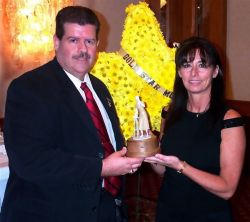 Terria agreed to model for him, and found a pattern for a World War II-style dress, which she made in less than two days, Chernak noted. Chernak is carving a life-size, 5-foot-7-inch bronze image of an unsteady woman holding a crumpled telegram. The statue represents a mother who just received news of her son's death during World War II. The mother will stand atop a shiny black-granite pedestal that sits on a gold star with branches at the end of each point. A "fountain of tears" will sit in front of the bronze statue. The American Gold Star Mothers statue is scheduled to be dedicated at Putnam County (N.Y.) Veterans Memorial Park on the 2004 Gold Star Mothers Day -- the last Sunday of September, which falls on the 26th in 2004. The park is in the town of Kent, about 60 miles north of New York City in the heart of the picturesque Hudson Valley. The statue will stand near decommissioned military hardware: an M60A3 Army tank and a Cobra attack helicopter. On June 4, 1928, a group of 25 mothers met in the District of Columbia to plan a national organization to be known as American Gold Star Mothers Inc. The organization was incorporated under the laws of the district on Jan. 5, 1929, to honor mothers of those killed while in the armed forces, to promote patriotism and to assist veterans. A gold star symbolizes the supreme sacrifice made while serving in the armed forces. "The hardest part of this project was to have a face showing extreme grief and pain," Chernak said, as he held a replica of the statue at the recent Gold Star Mothers annual banquet at the Washington Marriott Hotel. "As my wife lost her daughter when her daughter was 13, she was able to give me that look of true grief." His wife agreed the grief was genuine. "When you look at that mother's face in the statue it's true grief, because I had to go there," Terria said. "I had to go to that night to remember the sorrow and the grief and pull it out. When you look at that statue, that's a mother's grief. That's loss! "Tragically, my daughter was killed with two other children," Terria noted. "She was my third child. That never goes away -- just never goes away." Terria didn't know anything about Gold Star Mothers until she met the organization's then-president, Dorothy Oxendine, last March when the proposal for the statue was being negotiated. "When I understood what Gold Star Mothers were all about, I was overcome with her peace and her quietness," Terria said. "Yet, when a mother loses a child, whether they're an infant, a teenager, or young man, there's a loss you see in the mother's eyes. "I saw something in her eyes, yet she's carrying on for other people," she said. "And there's a peace that goes with that. You can see it and feel it in these Gold Star Mothers." Terria said because of the war in Iraq and the global war on terrorism, Gold Star Mothers should be recognized even more today. "What they're doing is wonderful; they're helping others -- caring for others," she noted. Terria told the story of how the plan to build an American Gold Star Mothers Memorial was conceived. She said Fred Waterman, one of her husband's Army buddies from Vietnam, was driving around one day and saw something that made him exclaim, "What the hell is that?" "He saw a helicopter suspended in midair," Terria said. Curiosity caused Waterman to drive to the Putnam Veterans Memorial Park to find out why. As he got out of his car, he saw a plaque that read, "In memory and dedicated to Howard Bruckner," Chernak said. "Fred said he'd witnessed Howard's death in Vietnam," she said. "He said he carried Howard's body for two days in the jungle so it would be safe. Fred looked up the park's creator and found it to be Pete Allegretta, chairman of the Putnam County Joint Veterans Council." Allegretta invited Fred to a men's breakfast where Allegretta found out that Waterman was with his boyhood friend (Bruckner) when he was killed, Chernak said. Waterman suggested having a statue in the park, and Allegretta agreed, but said he didn't know how to arrange it. So Waterman put him in touch with his Army buddy, sculptor Andrew Chernak in Springfield, Pa. Waterman and Chernak were talking one day and discovered that Chernak was Bruckner's replacement in Vietnam. The men were assigned to the Army's 199th Light Infantry Brigade. Andrew went to Vietnam as a private first class and came home as a sergeant wearing the Bronze Star Medal, two Purple Hearts and the Combat Infantryman's Badge. He was wounded twice by shrapnel in March 1970. "So Fred carried the body of Howard Bruckner, and Andrew became Howard's replacement," Terria noted. "Andrew's Vietnam jungle uniform is on display at West Point (the U.S. Military Academy) in the Gallery of the American Soldier. When he dressed the dummy, Andrew graffitied the helmet as the men did in Vietnam. On one side of the helmet is Howard's nickname -- 'Windy' -- and the unit, Company C, 4th Battalion, 12th Infantry Regiment, 199th Light Infantry Brigade. "Windy said (that) when he got out of the Army, he was going to go to West Point," Terria said. "So now his name is at West Point forever." Terria said it's amazing how this all ties in together and with her daughter's death. "The grief shown in the statue is because of my daughter's death," she said. "It's amazing how God pulls people together." Terria said more than 30 years ago, an 18-year-old soldier was killed in Vietnam, and her husband, who also was 18, replaced the man who was killed. "Now, 30-some years from that time, the man who was killed is being memorialized by the man who replaced him," she said. "He's being memorialized through the Gold Star Mothers." Allegretta, who was then chairman of the Putnam County Joint Veterans Council, said, "This all ties in with my buddy, Sgt. Howard Bruckner, who was killed in Vietnam. In 1997, we built a veterans memorial in our park. As years passed, I added on an M60A3 tank that the Army donated. Last June, we dedicated a Cobra 