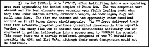 A Note from The Virtual WallThe 3rd Bn, 7th Marines' After Action report for Operation TEXAS contains the following entry: