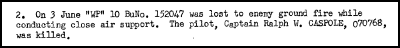 A Note from The Virtual WallThe VMA-223 Command Chronology for June 1966 contains the following entry: