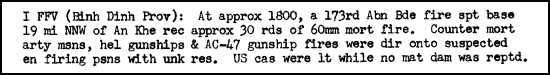 A Note from The Virtual WallThe MACV Summary for December 1968 contains the following entry for 30 December:![]() The unit involved was D Company, 4/503rd Infantry, and the "light casualties" included two dead: