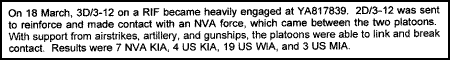 ![]() The three men missing in action were recovered; all had been killed by enemy fire. The seven US soldiers who died in the action, which took place in western Kontum Province about 31 kilometers north of the old Plei Djereng airfield, were