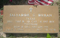 B TRP, 1ST SQDN, 10TH CAVALRY, 4TH INF DIV, USARV Army of the United States Fort Stockton, Texas July 02, 1944 to May 20, 1970 SALVADOR G DURAN is on the Wall at Panel W10, Line 69 |