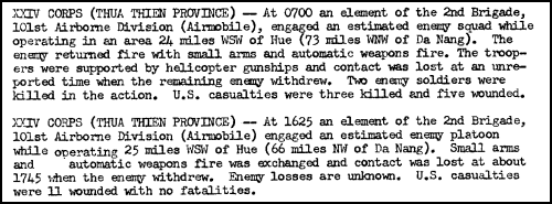 A Note from The Virtual WallThe MACV Summary for 09 April 1970 reflects two engagements in the A Shau Valley about 24 miles west-southwest of Hue:
