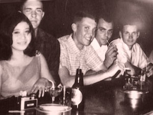 The photo was taken while on liberty in Okinawa. From left to right, the people in the picture are a waitress; Terry Smith; John Vallely; John Creasey; and Al May.
