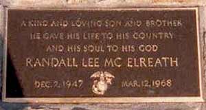 F CO, 2ND BN, 4TH MARINES, 3RD MARDIV, III MAF United States Marine Corps Midwest City, Oklahoma December 02, 1947 to March 12, 1968 RANDALL L McELREATH is on the Wall at Panel 44E, Line 26 |