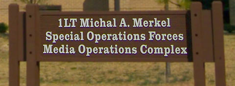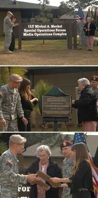 FORT BRAGG, N.C. (USASOC News Service, April 9, 2007) The Special Operation Forces Media Operations Complex was dedicated to 1st Lt. Michal Alvin Merkel during a ceremony here April 9.