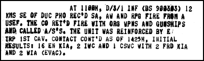 A Note from The Virtual WallThe Army's AMERICAL Division was under operational control of the Commanding General, III Marine Amphibious Force, and III MAF's operational reports covered the AMERICAL's operations. The following extract addressing D Company, 3rd Bn, 1st Infantry comes from the III MAF Daily Summary for 04 June 1969:
