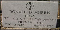 A CO, 2ND BN, 7TH CAVALRY, 1ST CAV DIV, USARV Army of the United States Houston, Texas December 10, 1947 to June 19, 1967 DONALD D MORRIS is on the Wall at Panel 22E, Line 16 |