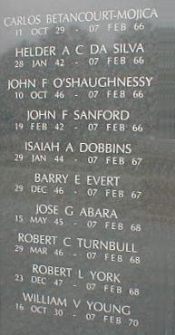 B CO, 1ST BN, 327TH INFANTRY, 101ST ABN DIV, USARV Army of the United States Coopersburg, Pennsylvania February 19, 1942 to February 07, 1966 JOHN F SANFORD is on the Wall at Panel 5E, Line 15 |