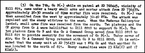 A Note from The Virtual WallThe 1/26 Marines' Command Chronology for June 1967 contains the following entry: