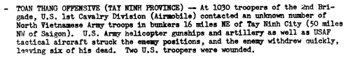 Although the entry isn't specific enough to be sure it refers to the Bravo 1/12 engagement in Tay Ninh Province on 14 July, it seems to do so - except that instead of two wounded, there were two dead: