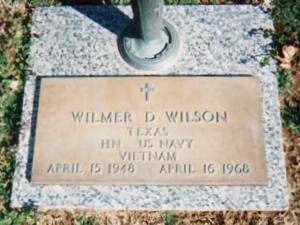 Wilmer Dwayne Wilson was born and raised in Sweetwater, Texas. He nlisted in the Navy after graduating from Sweetwater High School in 1966. He trained as a Hospital Corpman and was assigned to the 9th Marines in Vietnam. He was killed in hostile action on April 16, 1968. He was posthumously awarded a Bronze Star and his second Purple Heart. He was buried with full military honors in the Garden of Memories Cemetery in Sweetwater, Texas.