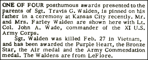 C CO, 2ND BN, 8TH CAVALRY, 1ST CAV DIV, USARV Army of the United States Kansas City, Missouri July 25, 1947 to February 27, 1967 TRAVIS G WALDEN is on the Wall at Panel 15E, Line 111 |