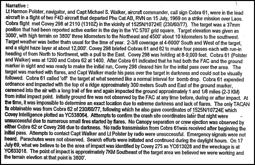 A Note from The Virtual WallA 1996 Joint Task Force Full Accounting report on the loss of F-4D tail number 66-7603 contains the following paragraph: