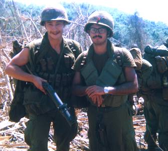 In the picture Dick Weid is on the left holding the M-79 grenade launcher. The guy on the right is me, Joe Persaud. I was Dick's squad leader at the time and through most of his tour. I was on R&R when he got killed. We miss him.