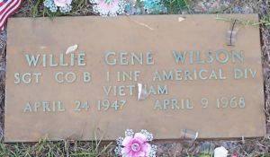 C CO, 3RD BN, 1ST INFANTRY, 11TH INFANTRY BDE, AMERICAL DIV, USARV Army of the United States Talladega, Alabama April 24, 1947 to April 09, 1968 WILLIE GENE WILSON is on the Wall at Panel 49E, Line 7 |